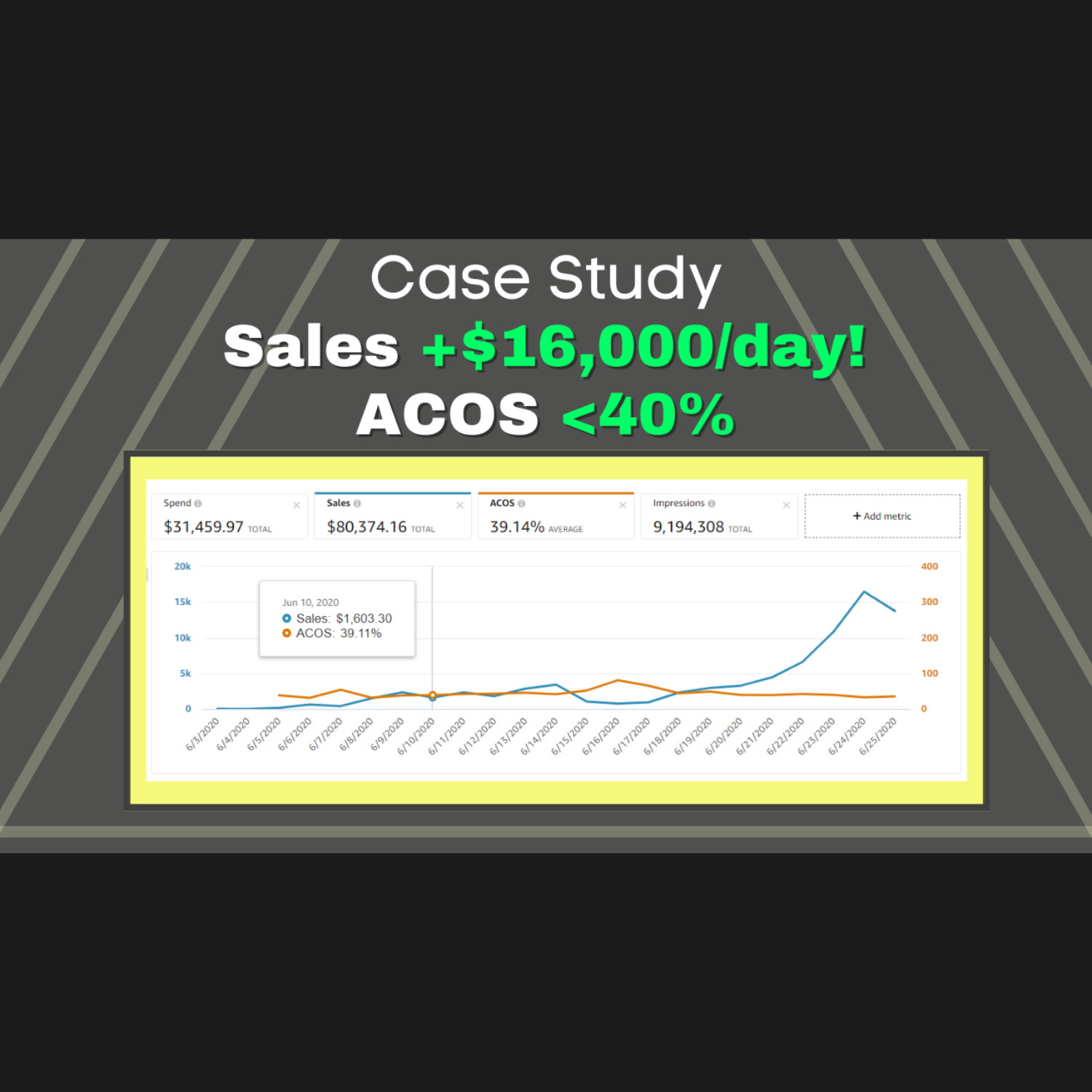 When Delafino came to us, they were struggling to get any sales velocity. We were able to help them scale from $0 to $16,000 per day in sales within 3 weeks, all while keeping the ACOS below 40%.
